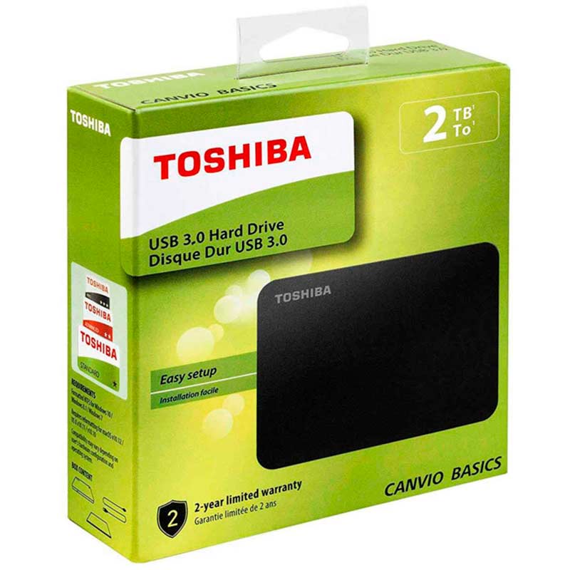 - Disco duro externo Toshiba Canvio Basic, 2TB, USB 3.0, 2.5″, Negro.